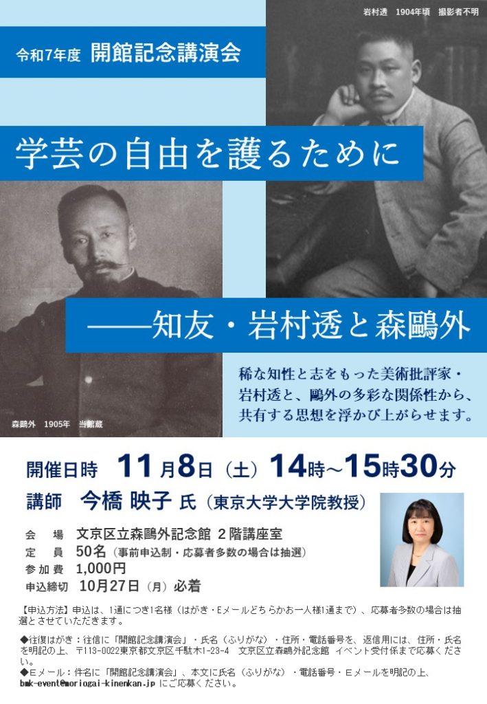 開館記念講演会「学芸の自由を護るために——知友・岩村透と森鴎外」【参加者募集中】